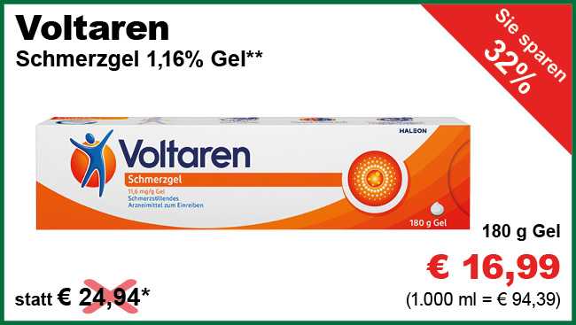 Alle Preise verstehen sich inklusive Mwst. | Preisänderungen und Irrtum vorbehalten | Angebote in haushaltsüblichen Mengen, solange der Vorrat reicht | * unser bisheriger Verkaufspreis | ** Zu Risiken und Nebenwirkungen lesen Sie die Packungsbeilage, und fragen Sie Ihre Ärztin, Ihren Arzt oder in Ihrer Apotheke. | Produktabbildungen so ähnlich.